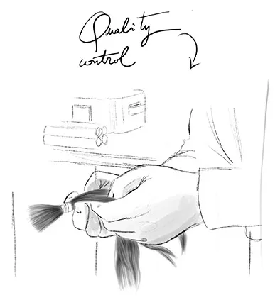 Une fois entre nos mains, nous les vérifions avec grand soin en suivant un processus traditionnel, manuel et artisanal. Nous les lavons un par un, les séchons naturellement, les peignons et les classons en fonction de leur qualité, de leur couleur et de leur texture.